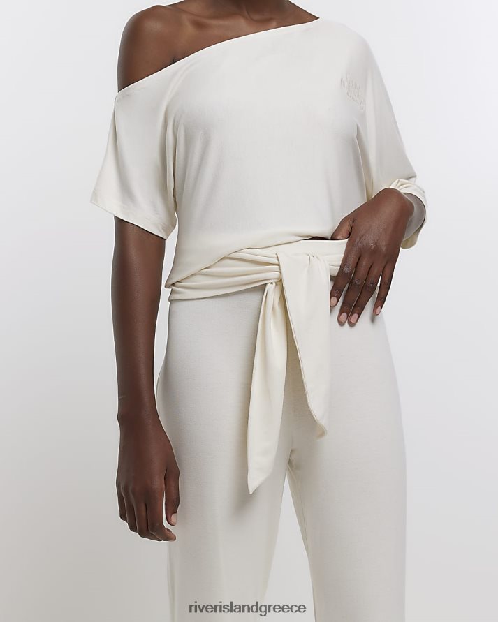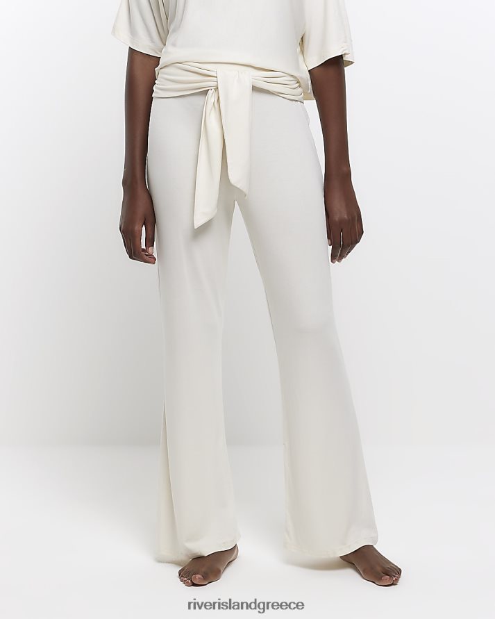 River Island ενδύματα κρέμα γυναίκες δέσιμο στη μέση φαρδύ παντελόνι B6N8X4701
