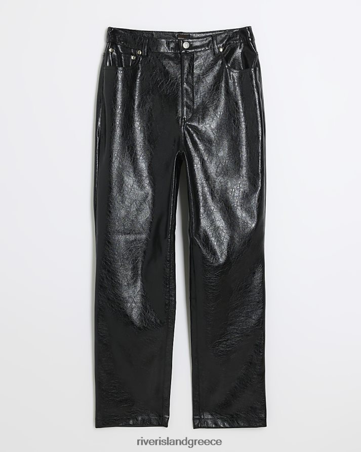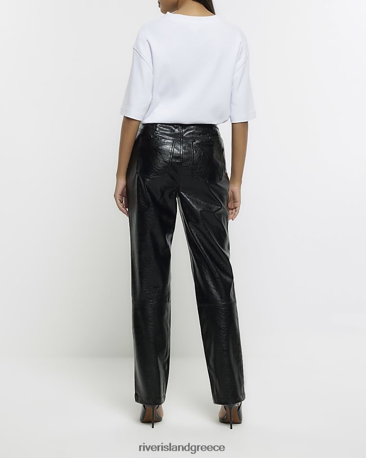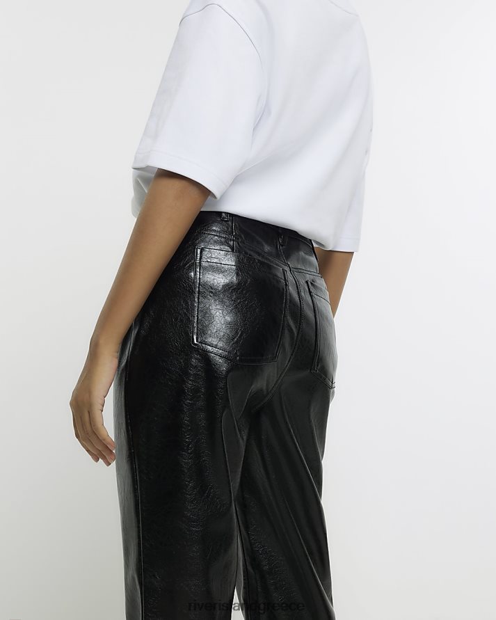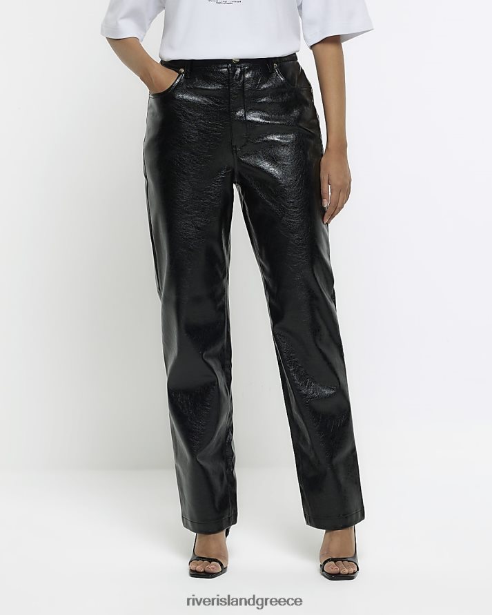 River Island ενδύματα μαύρος γυναίκες ίσιο παντελόνι από τεχνητό δέρμα με τρίξιμο B6N8X4306