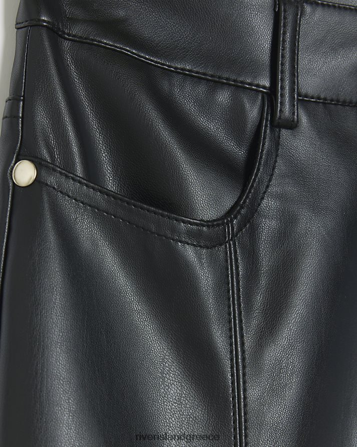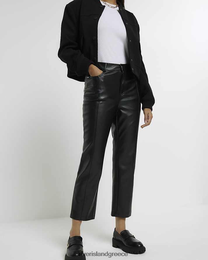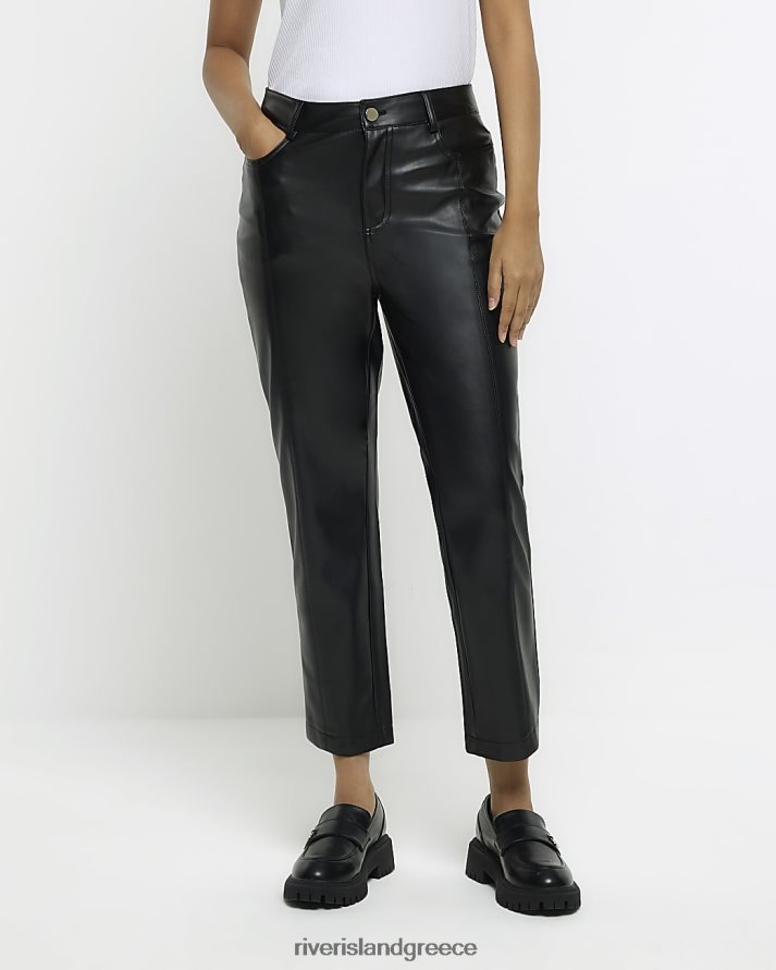 River Island ενδύματα μαύρος γυναίκες ίσιο crop παντελόνι από ψεύτικο δέρμα B6N8X4245