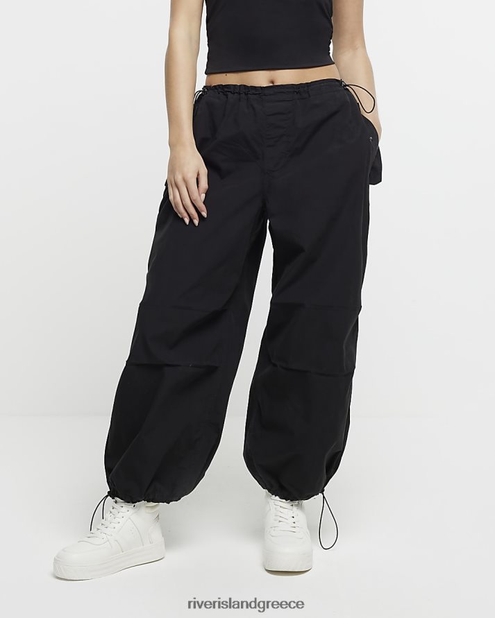 River Island ενδύματα μαύρος γυναίκες μικροκαμωμένο παντελόνι αλεξίπτωτου χαμηλού ύψους B6N8X5288