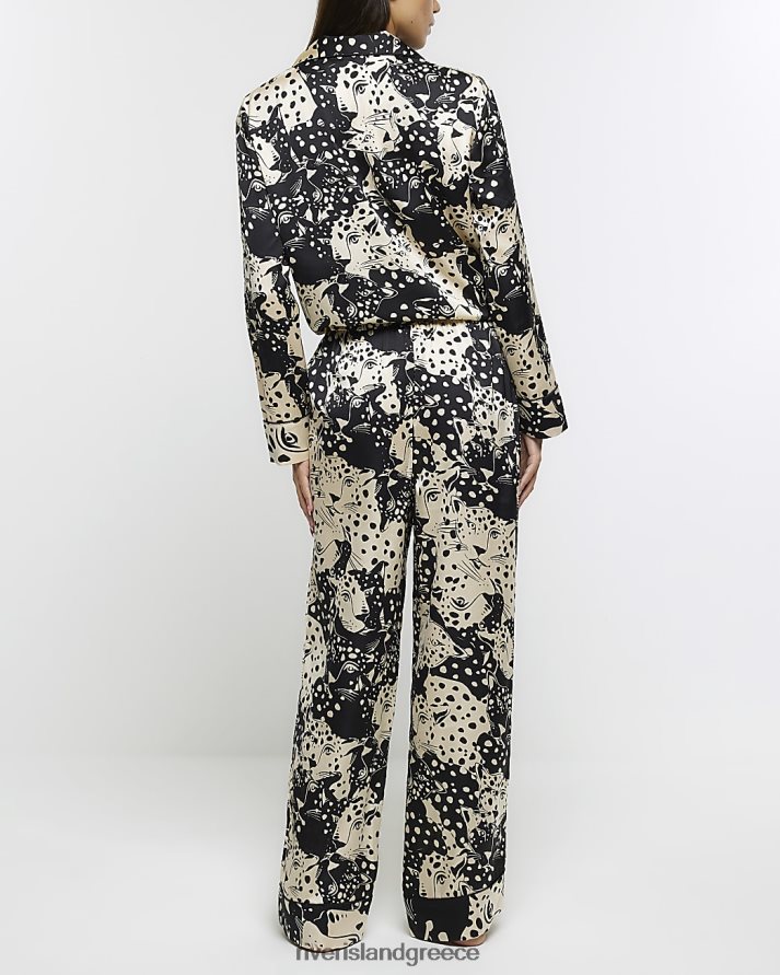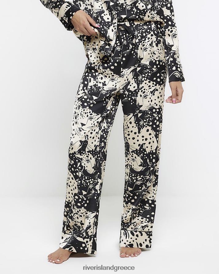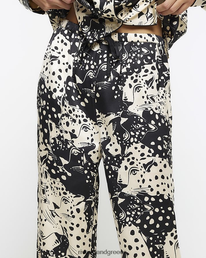 River Island ενδύματα μαύρος γυναίκες σατέν παντελόνι πιτζάμα με animal print B6N8X572
