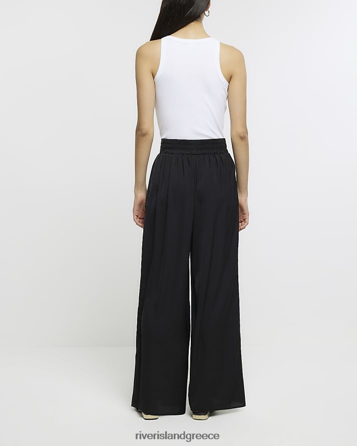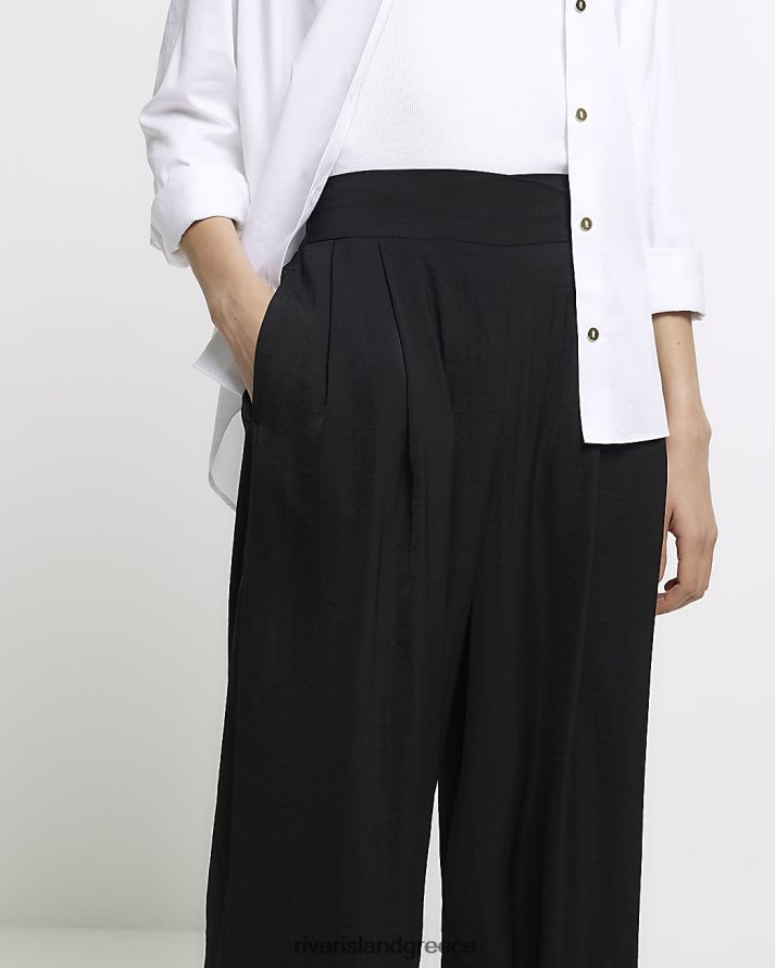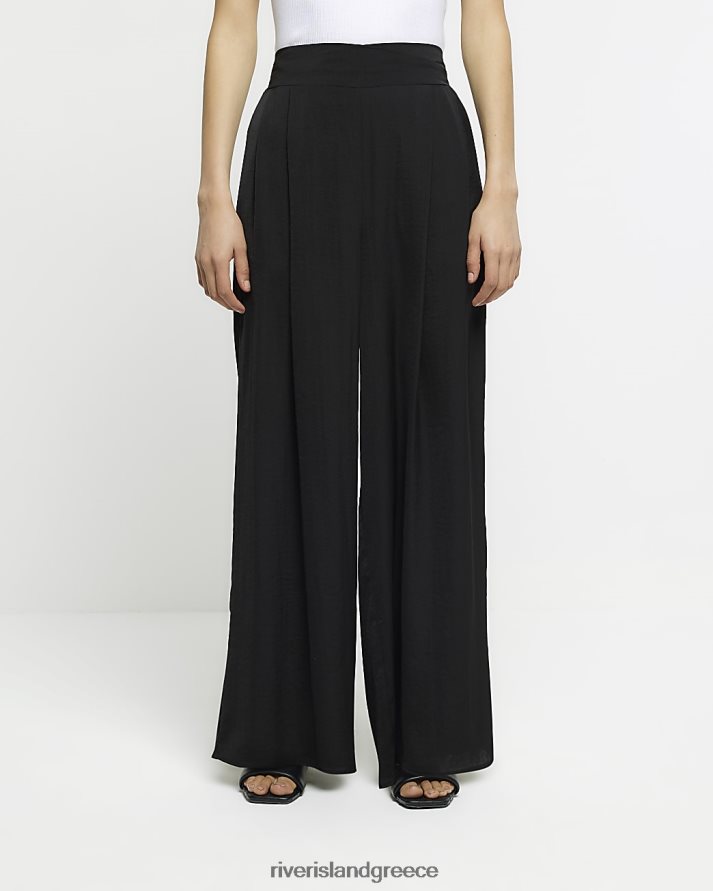 River Island ενδύματα μαύρος γυναίκες σατέν φαρδύ παντελόνι B6N8X1455