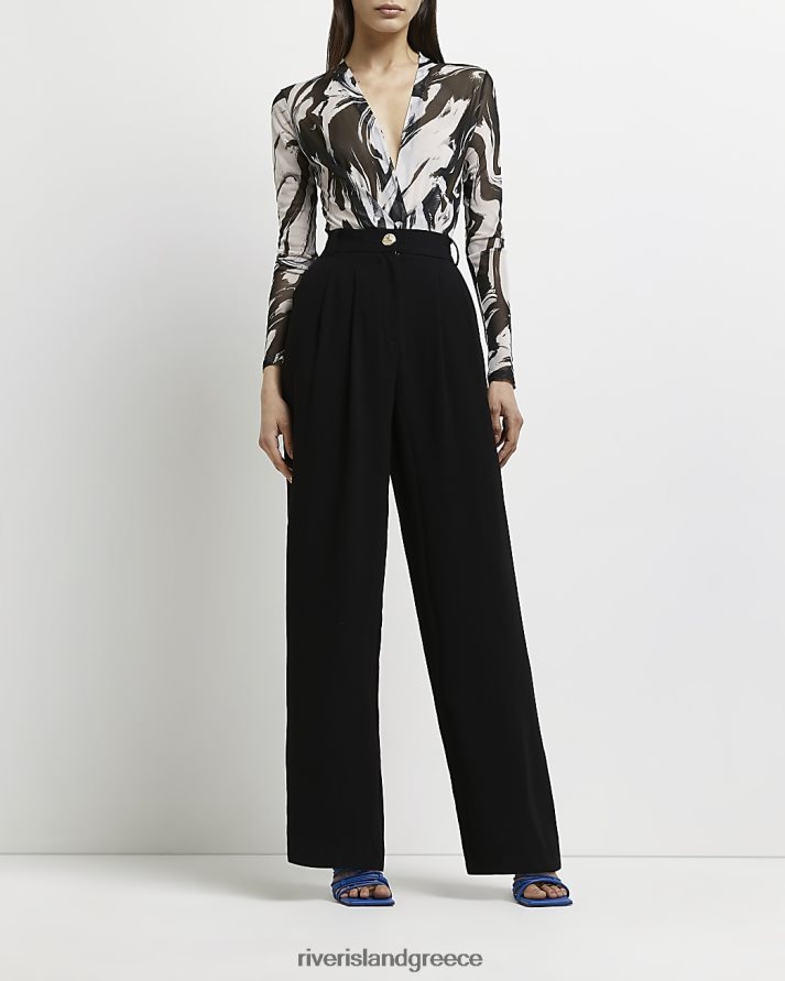 River Island ενδύματα μαύρος γυναίκες φαρδύ πλισέ παντελόνι B6N8X4998