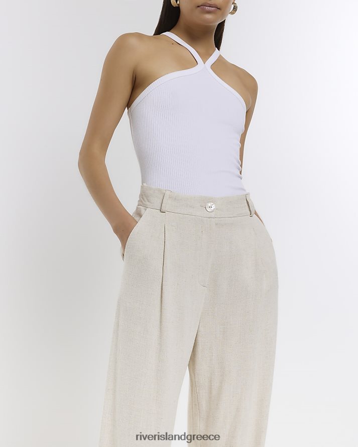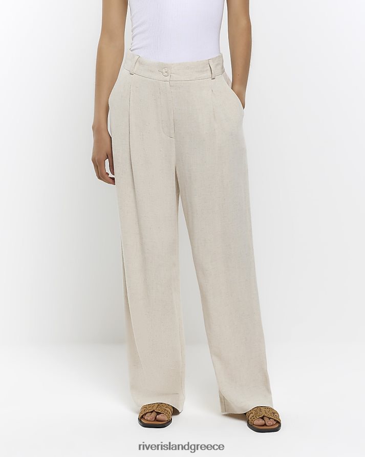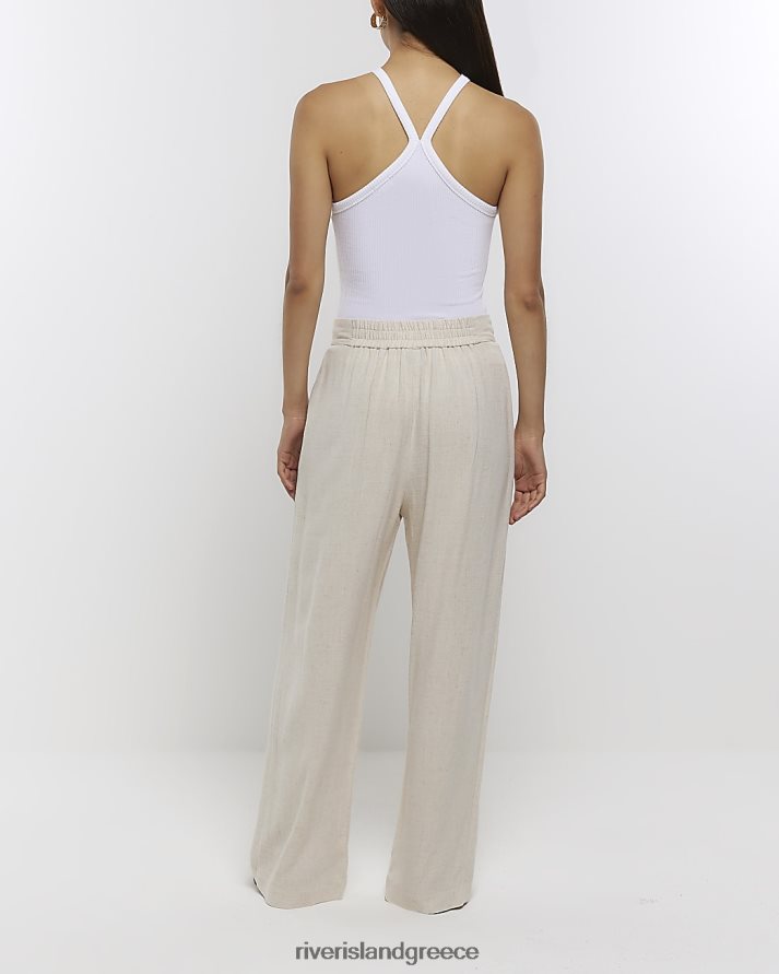 River Island ενδύματα μπεζ γυναίκες φαρδύ παντελόνι με λινό B6N8X1393