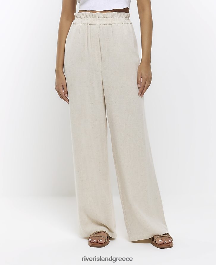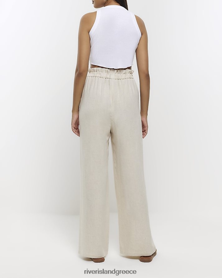 River Island ενδύματα μπεζ γυναίκες φαρδύ παντελόνι με λινό B6N8X4263