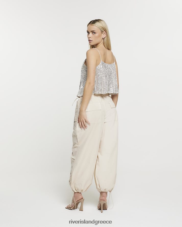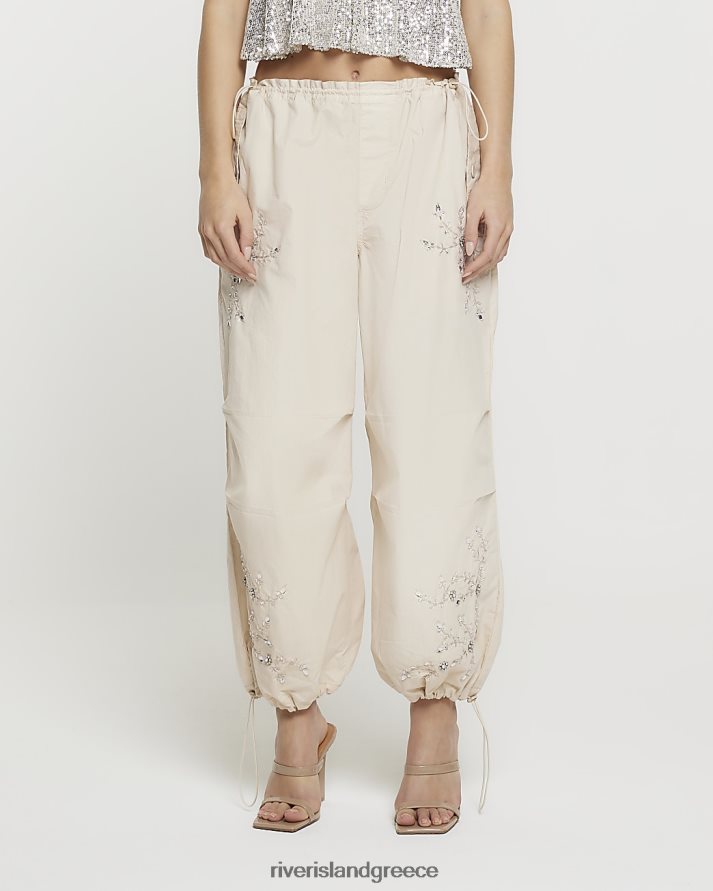 River Island ενδύματα μπεζ γυναίκες petite κεντημένο cargo παντελόνι B6N8X5306