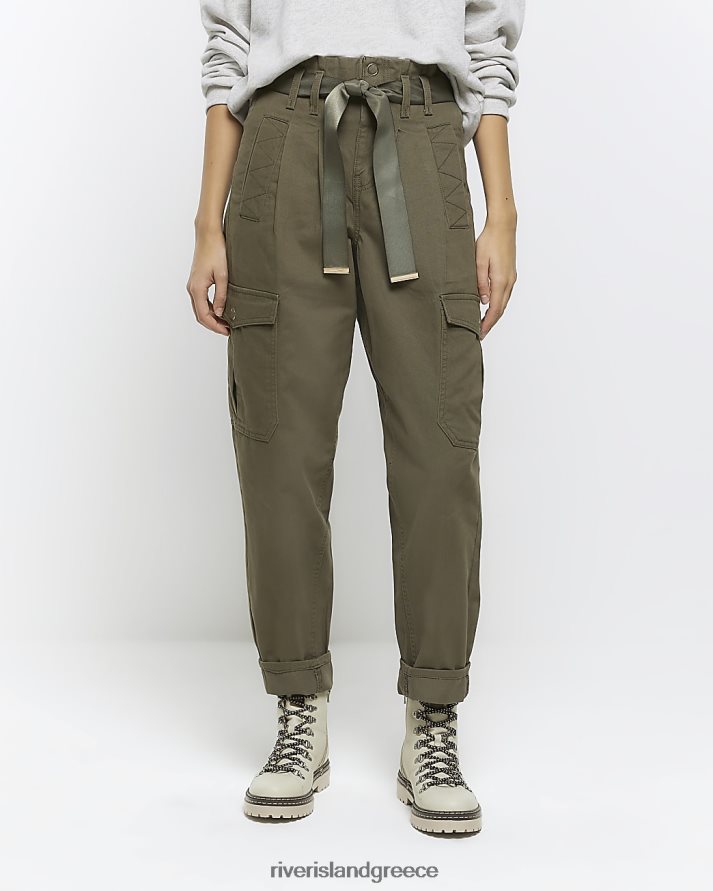 River Island ενδύματα χακί γυναίκες παντελόνι cargo με ζώνη B6N8X1284