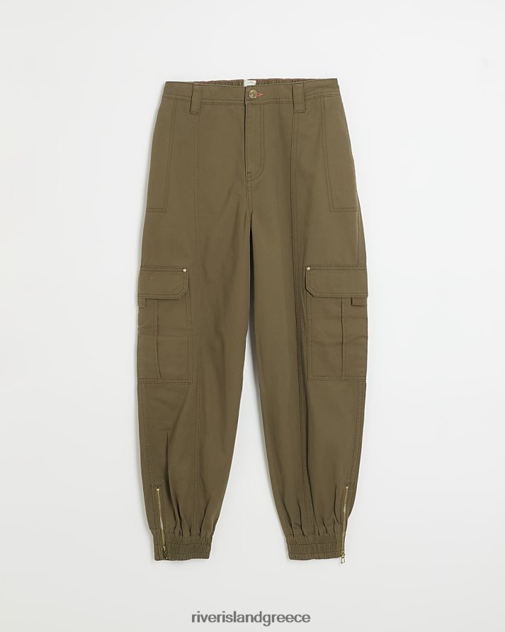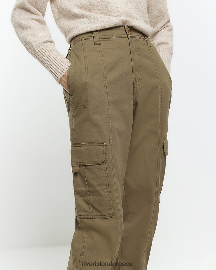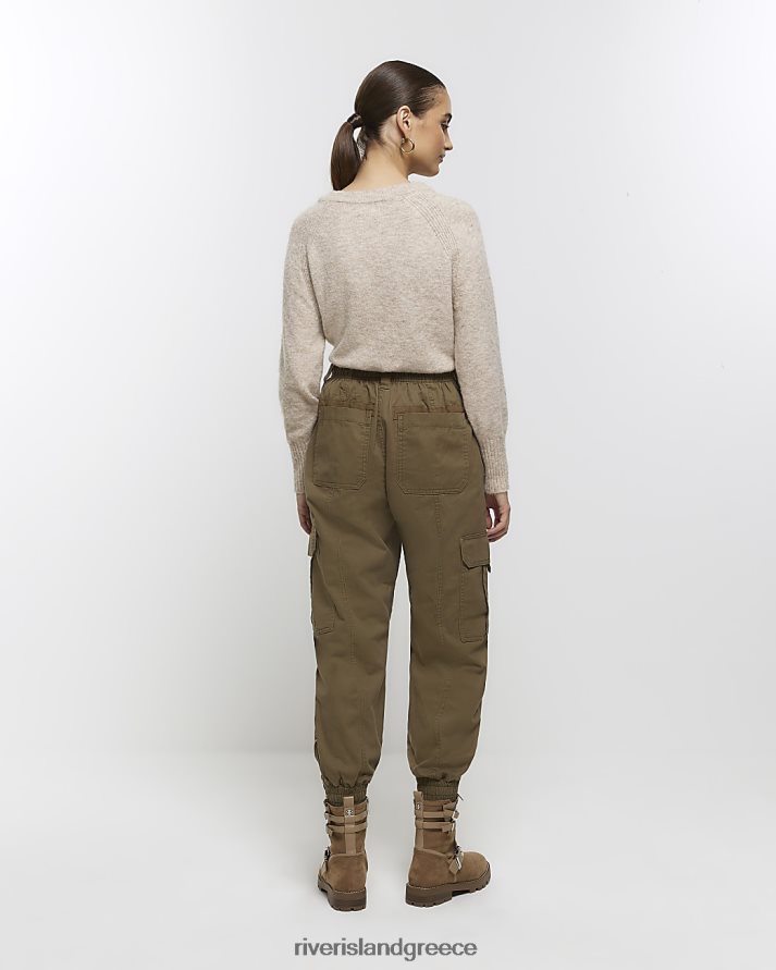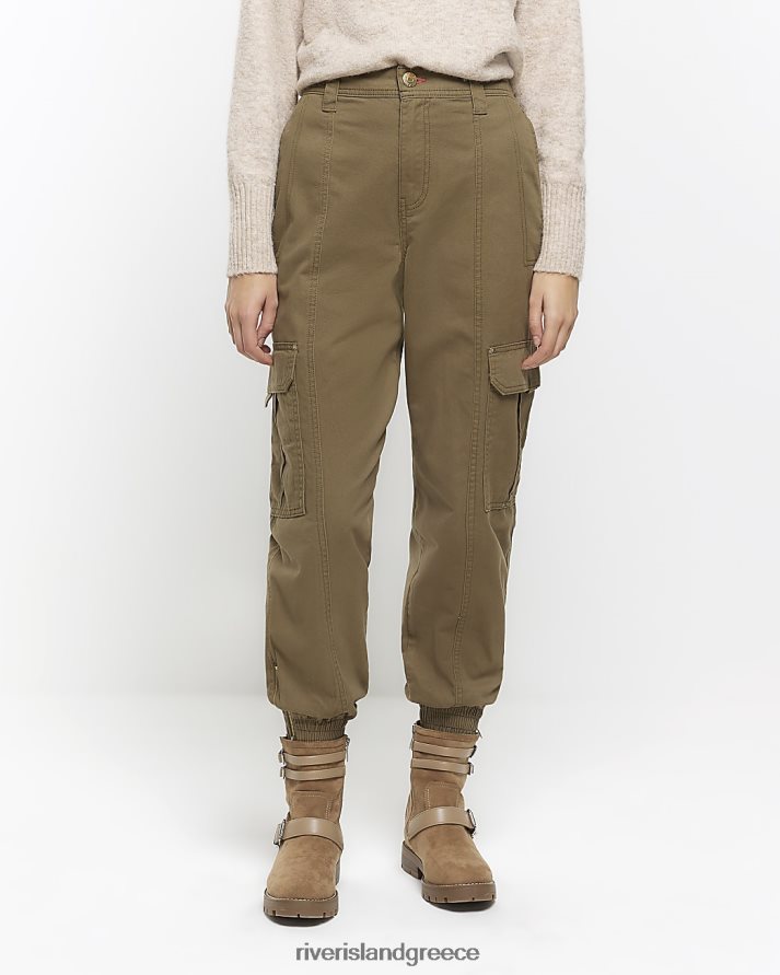 River Island ενδύματα χακί γυναίκες παντελόνι cargo με μανσέτες B6N8X4054