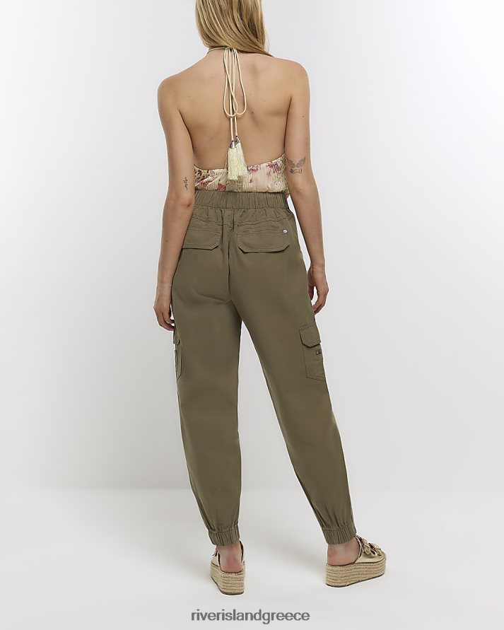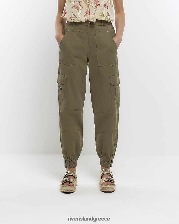 River Island ενδύματα χακί γυναίκες παντελόνι cargo με μανσέτες B6N8X4548