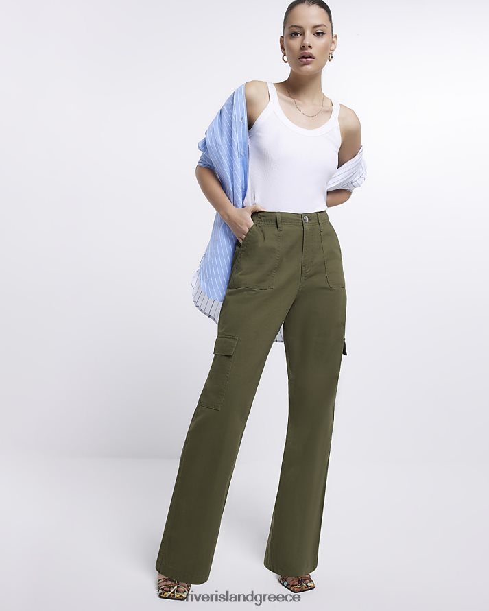 River Island ενδύματα χακί γυναίκες παντελόνι cargo με φαρδύ πόδι B6N8X500