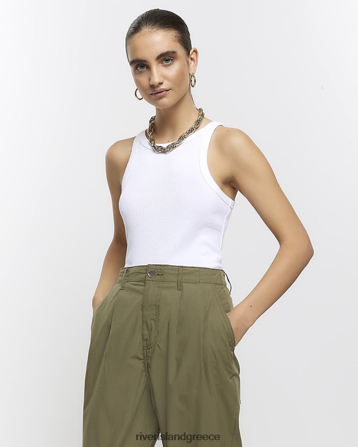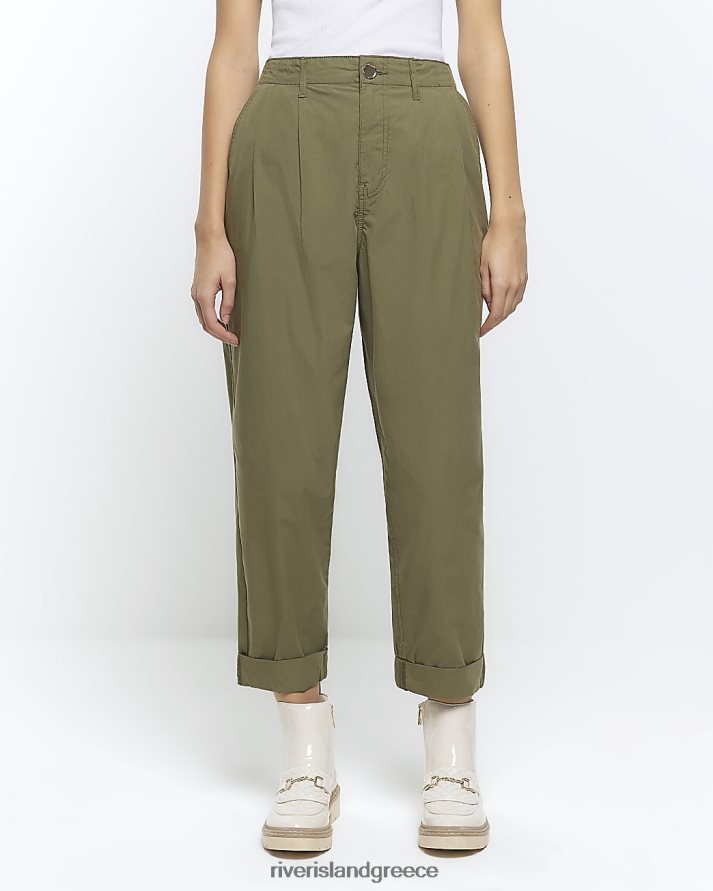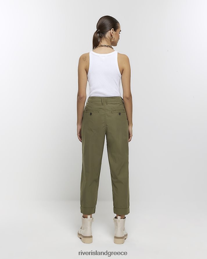 River Island ενδύματα χακί γυναίκες ψηλόμεσο κωνικό παντελόνι B6N8X4696
