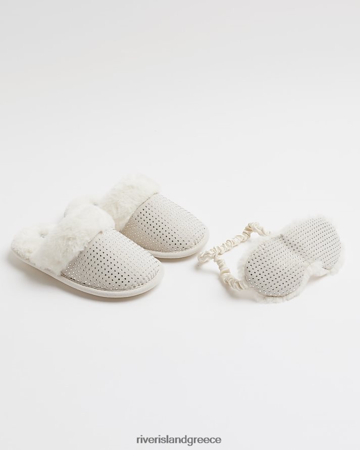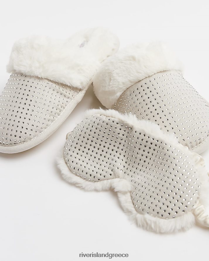 River Island είδη υπόδησης μπεζ κορίτσια Σετ δώρου παντόφλες g diamante B6N8X6341