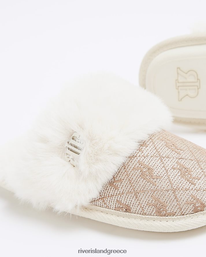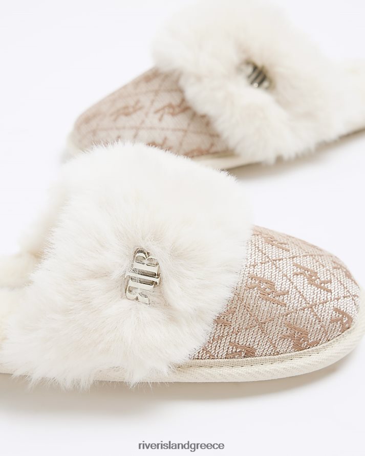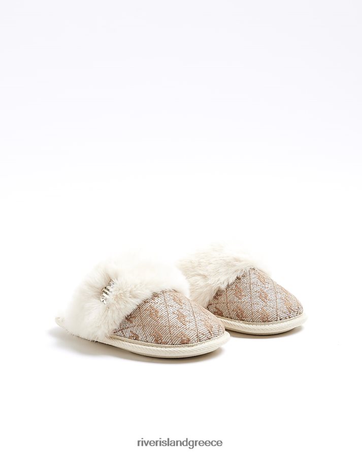River Island είδη υπόδησης μπεζ κορίτσια g παντόφλες από τεχνητή γούνα ζακάρ B6N8X6063