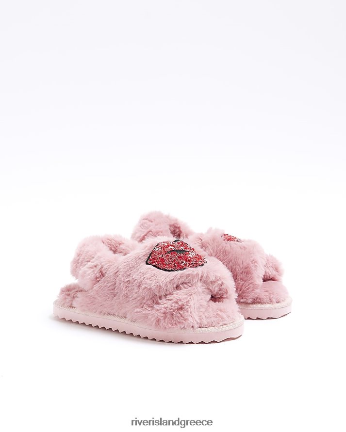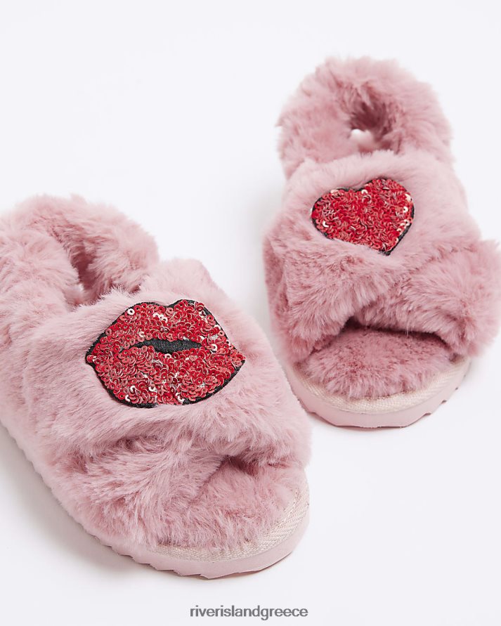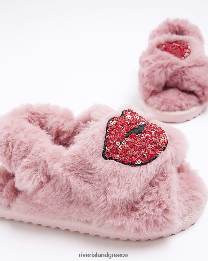 River Island είδη υπόδησης ροζ κορίτσια g παντόφλες για χείλη από ψεύτικη γούνα B6N8X6051