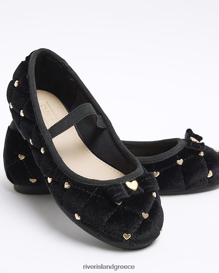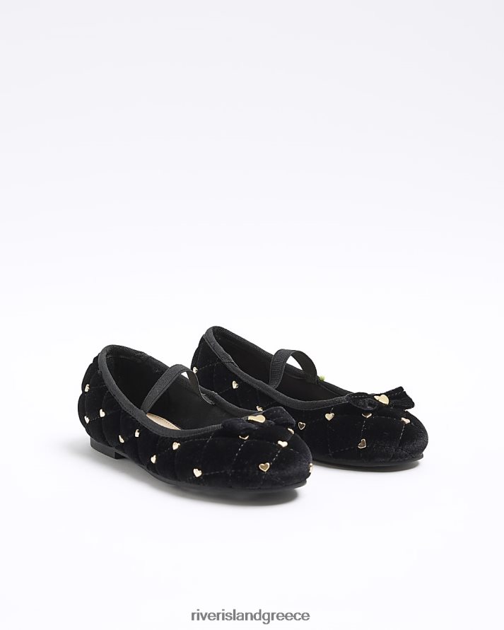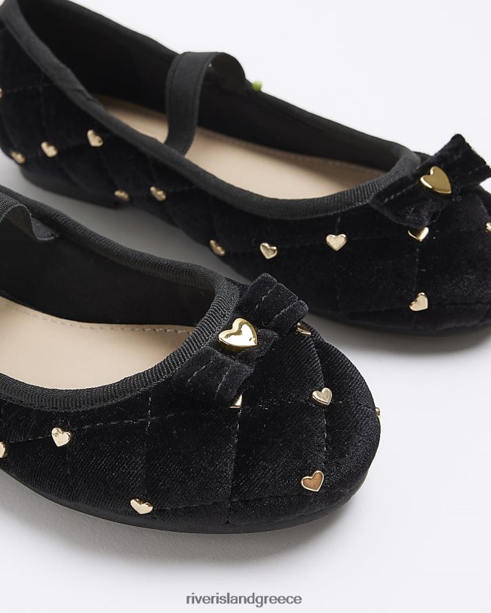 River Island είδη υπόδησης μαύρος κορίτσια g βελούδινη καρδιά παπούτσια μπαλαρίνας B6N8X6070