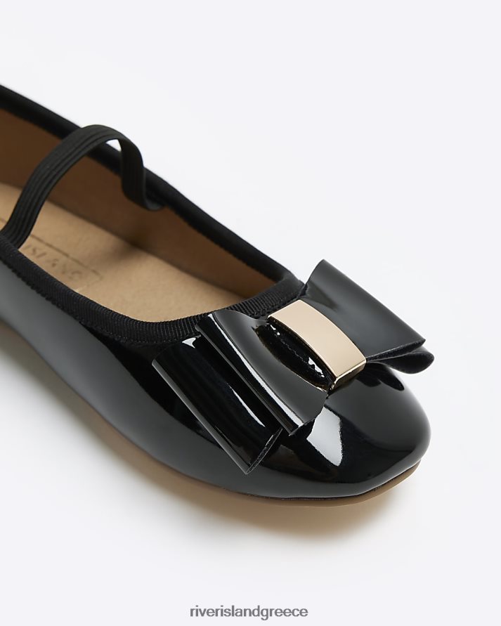River Island είδη υπόδησης μαύρος κορίτσια g patent bow μπαλαρίνα παπούτσια B6N8X3196