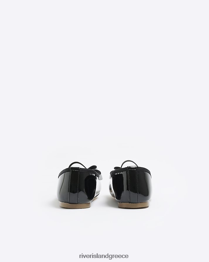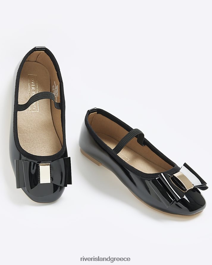 River Island είδη υπόδησης μαύρος κορίτσια g patent bow μπαλαρίνα παπούτσια B6N8X3405