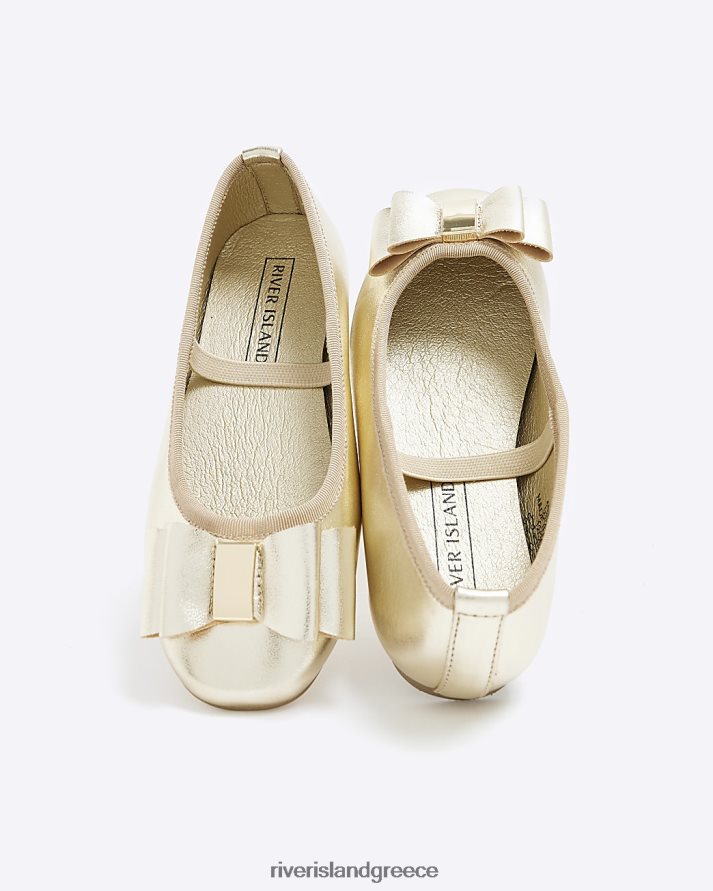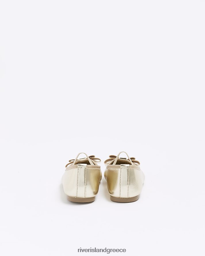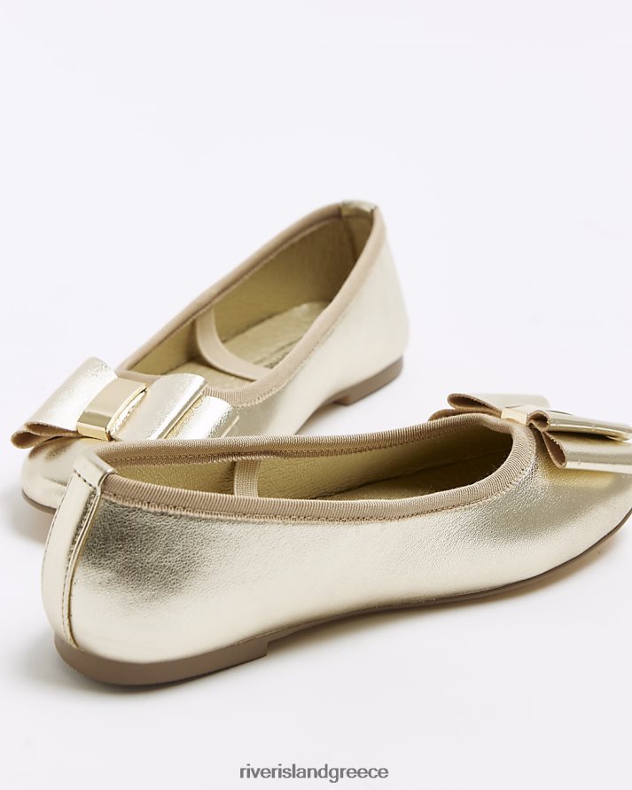 River Island είδη υπόδησης χρυσός κορίτσια g παπούτσια μπαλαρίνας με λεπτομέρεια φιόγκου B6N8X3197