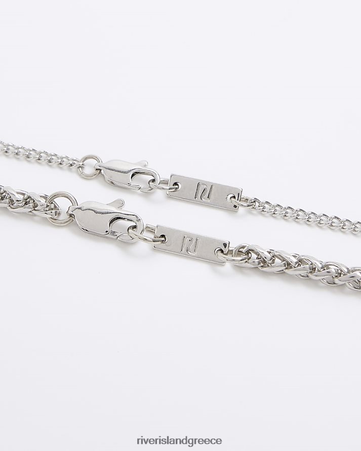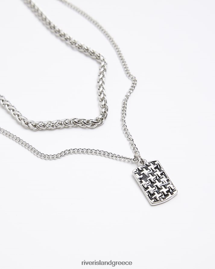 River Island αξεσουάρ ασήμι άνδρες έγχρωμο κολιέ με ετικέτα houndstooth B6N8X5552