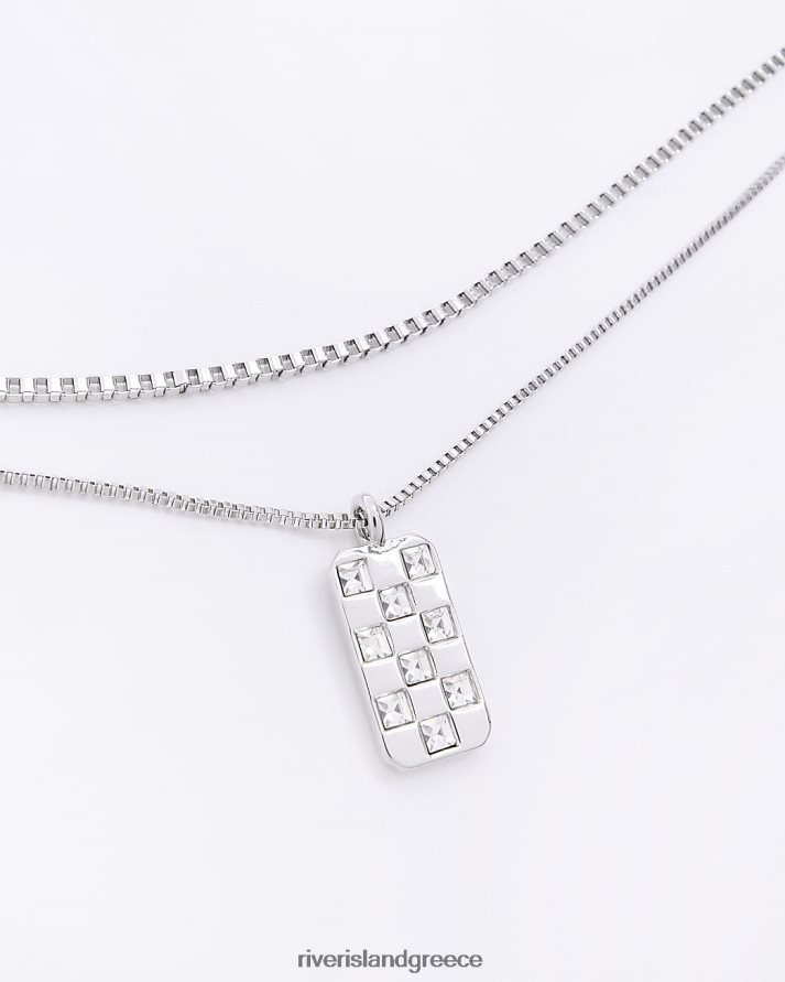 River Island αξεσουάρ ασήμι άνδρες κολιέ με λεπτομέρεια από διαμάντι B6N8X5899