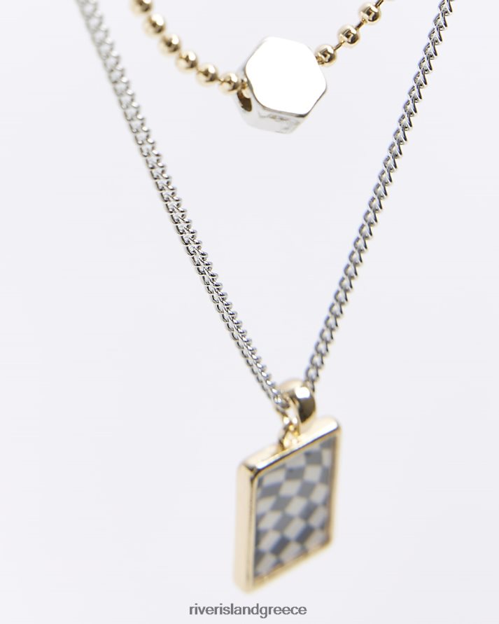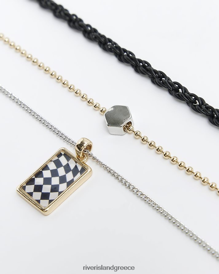 River Island αξεσουάρ μαύρο ασήμι άνδρες Κρεμαστό σκακιέρα μακρύ κολιέ πολλαπλών σειρών B6N8X5748