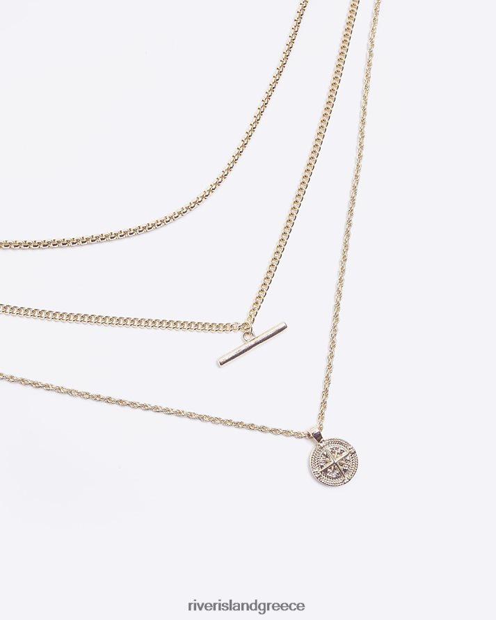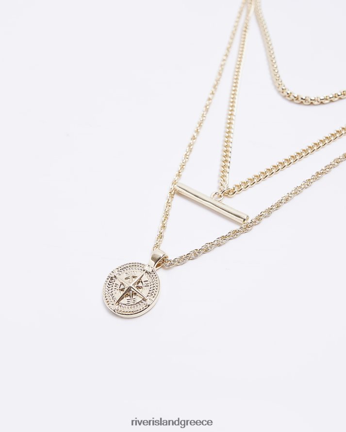 River Island αξεσουάρ χρυσός άνδρες έγχρωμο κολιέ πυξίδα B6N8X5863