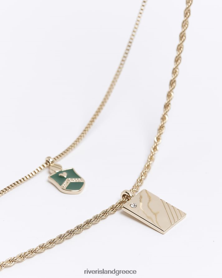 River Island αξεσουάρ χρυσός άνδρες κολιέ πολλαπλών σειρών χρώματος ασπίδας και ετικέτας B6N8X5746