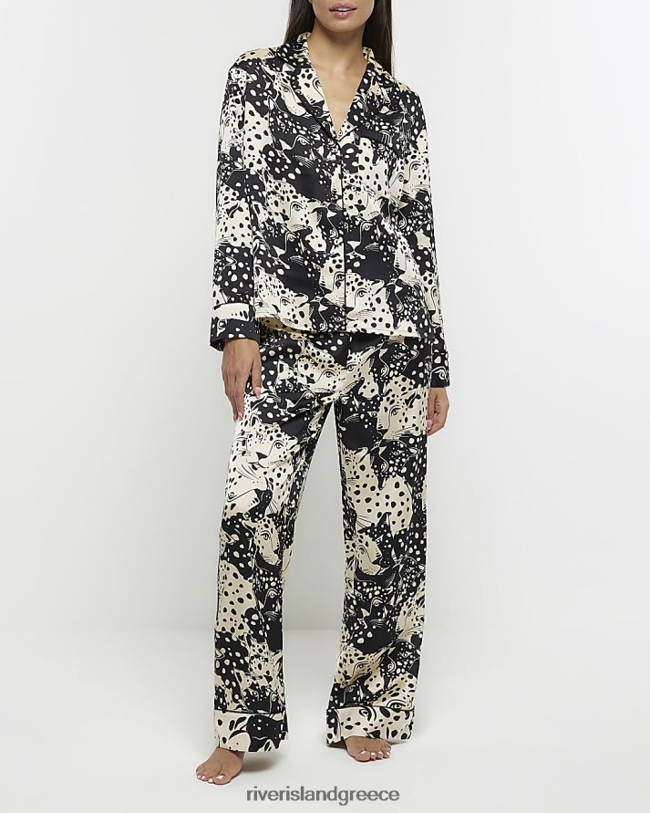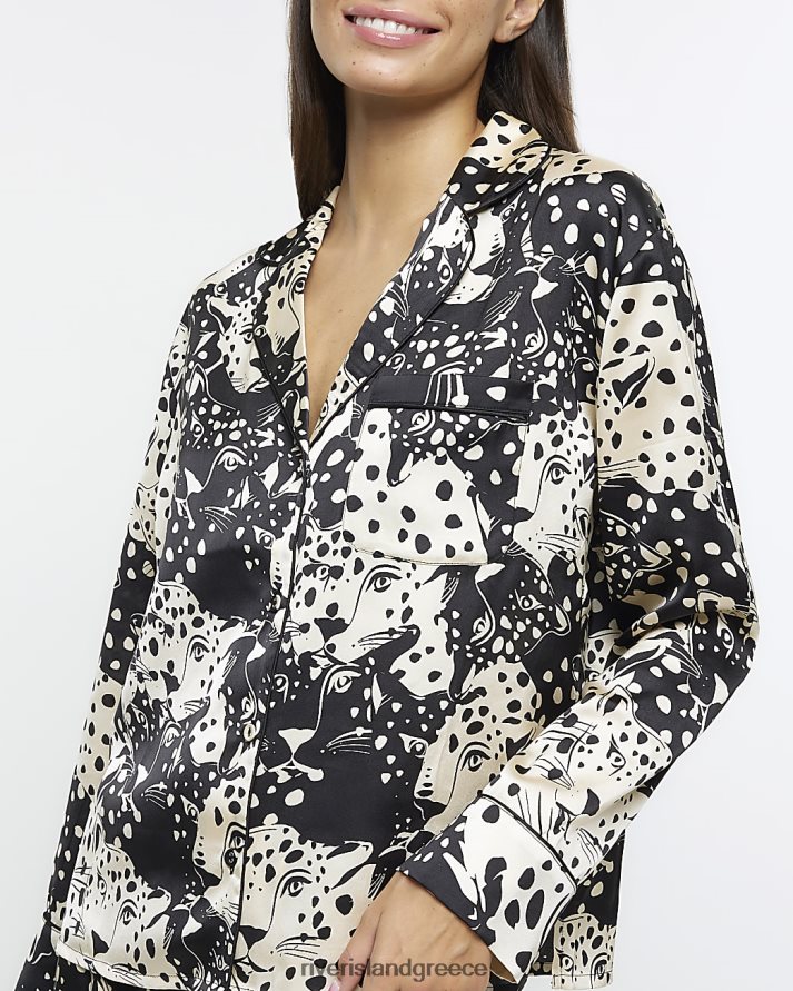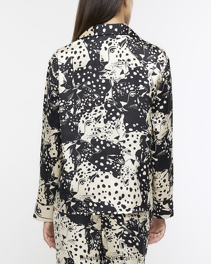 River Island ενδύματα μαύρος γυναίκες πουκάμισο πιτζάμα από σατέν animal print B6N8X570