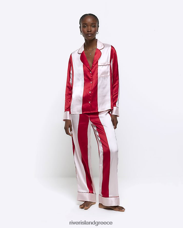 River Island ενδύματα το κόκκινο γυναίκες Σατέν ριγέ πιτζάμα πουκάμισο B6N8X3988