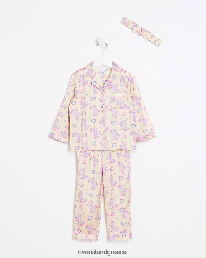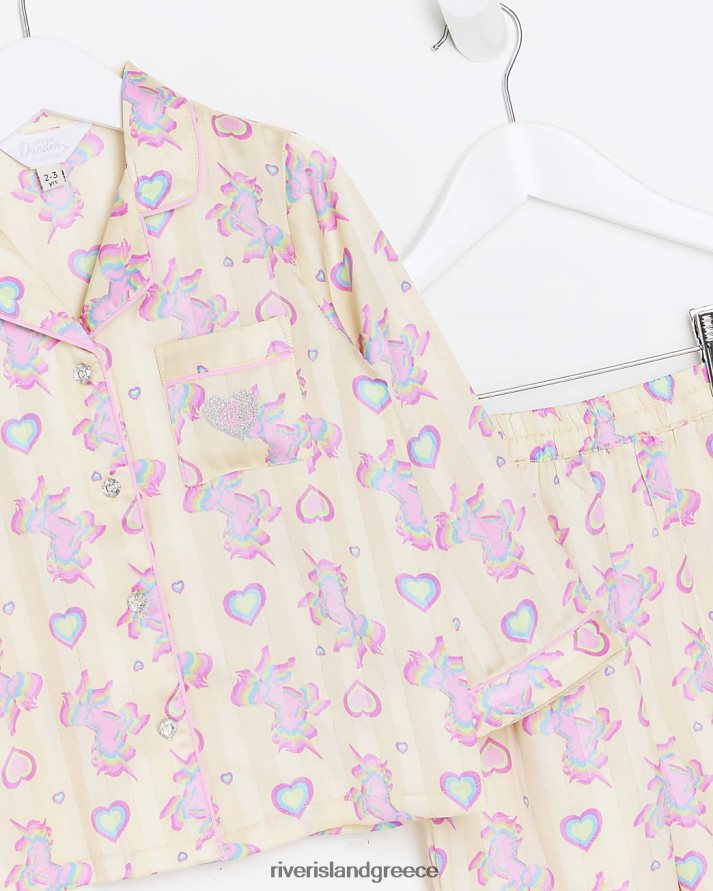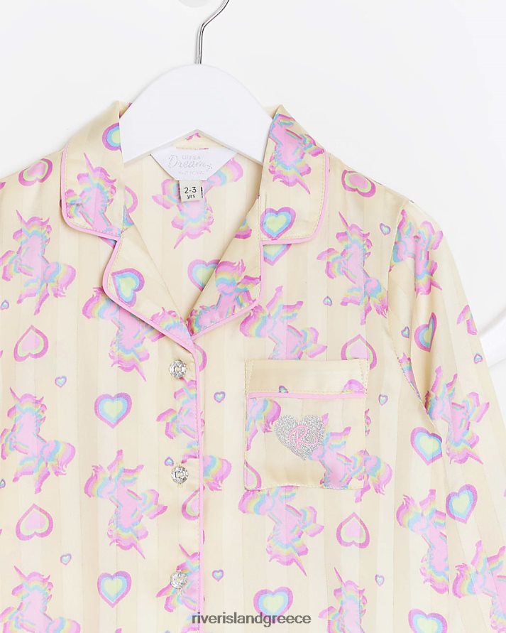 River Island ενδύματα κίτρινος κορίτσια mg σατέν πιτζάμες μονόκερου B6N8X6732