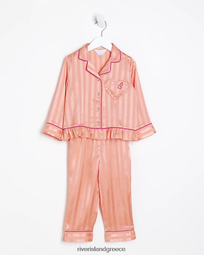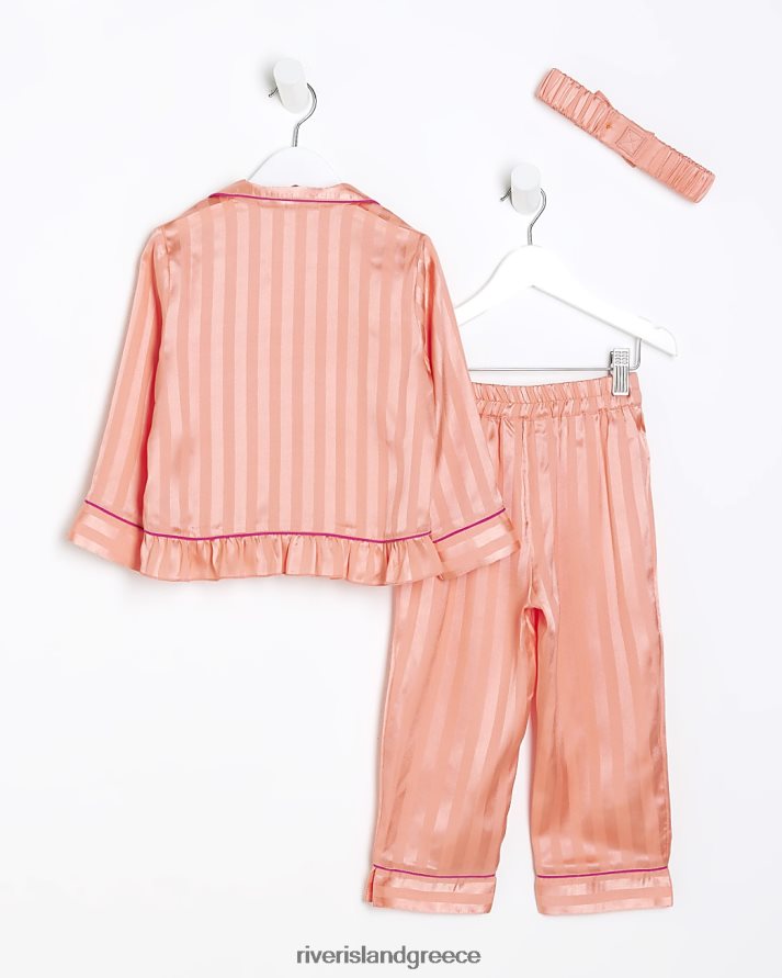 River Island ενδύματα κοράλλι κορίτσια Σετ πιτζάμες ριγέ σατέν mg B6N8X3599