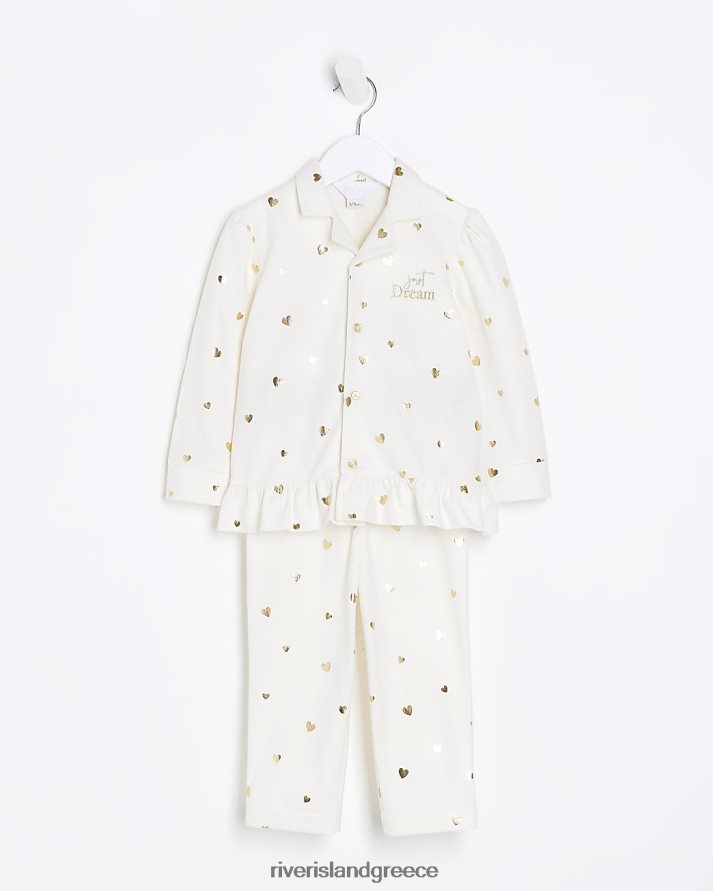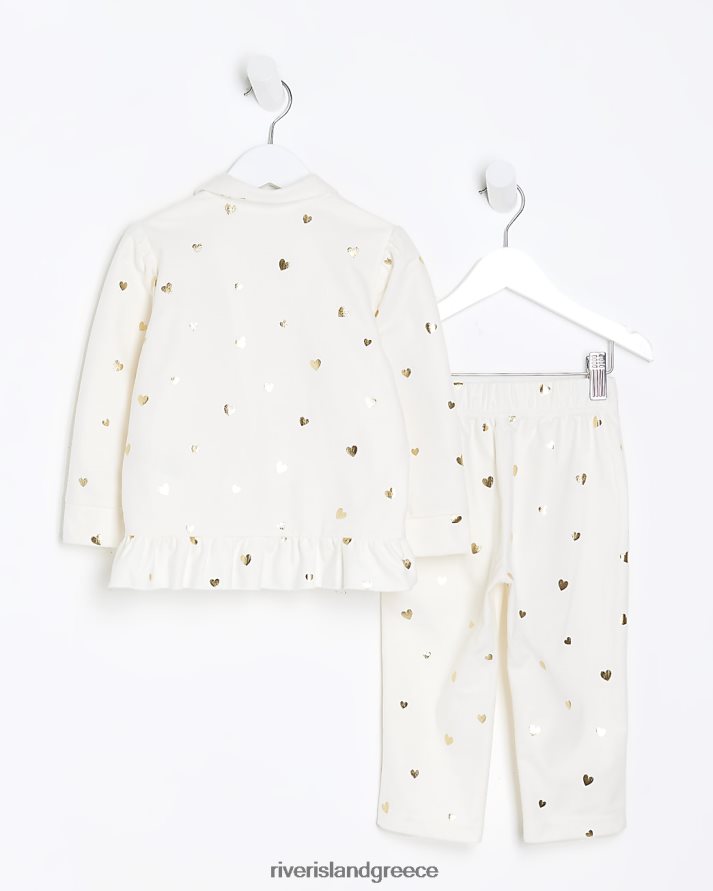 River Island ενδύματα κρέμα κορίτσια Σετ πιτζάμες με στάμπα καρδιάς mg B6N8X6727