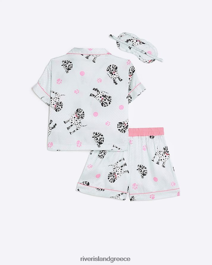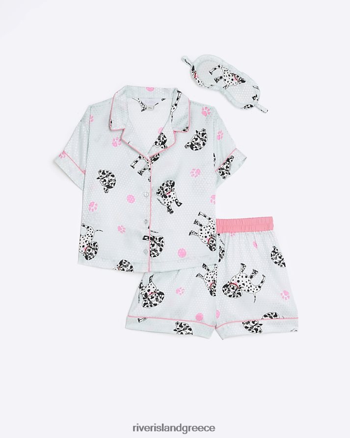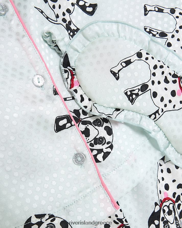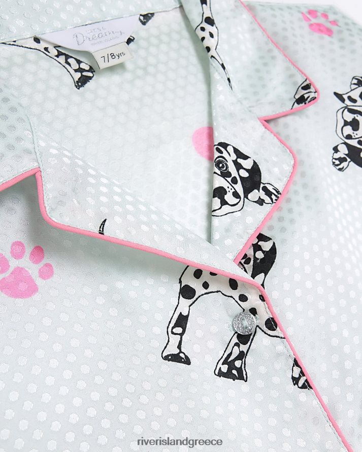 River Island αξεσουάρ πράσινος κορίτσια Σετ πιτζάμες 3 τεμαχίων με σατέν στάμπα B6N8X6240