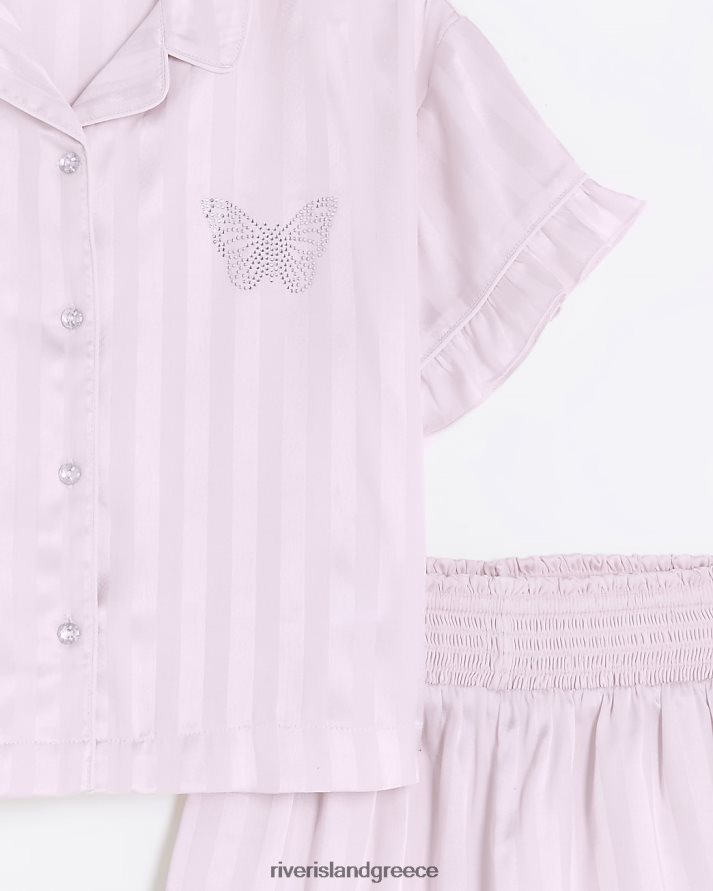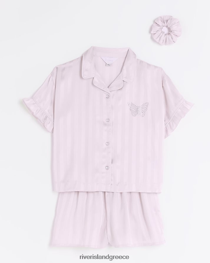 River Island αξεσουάρ ροζ κορίτσια g σετ πιτζάμες με ρίγες σατέν B6N8X6022