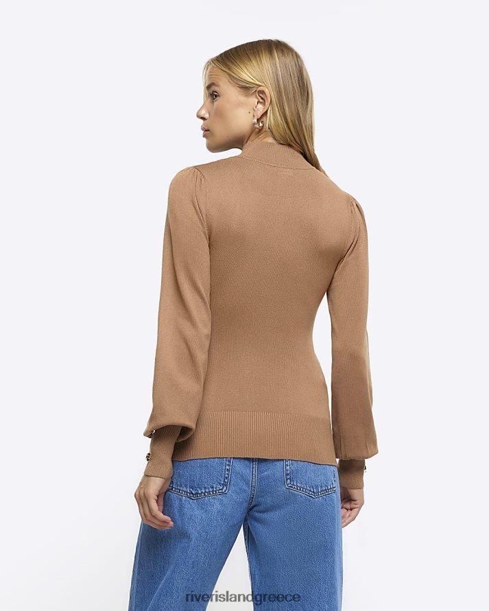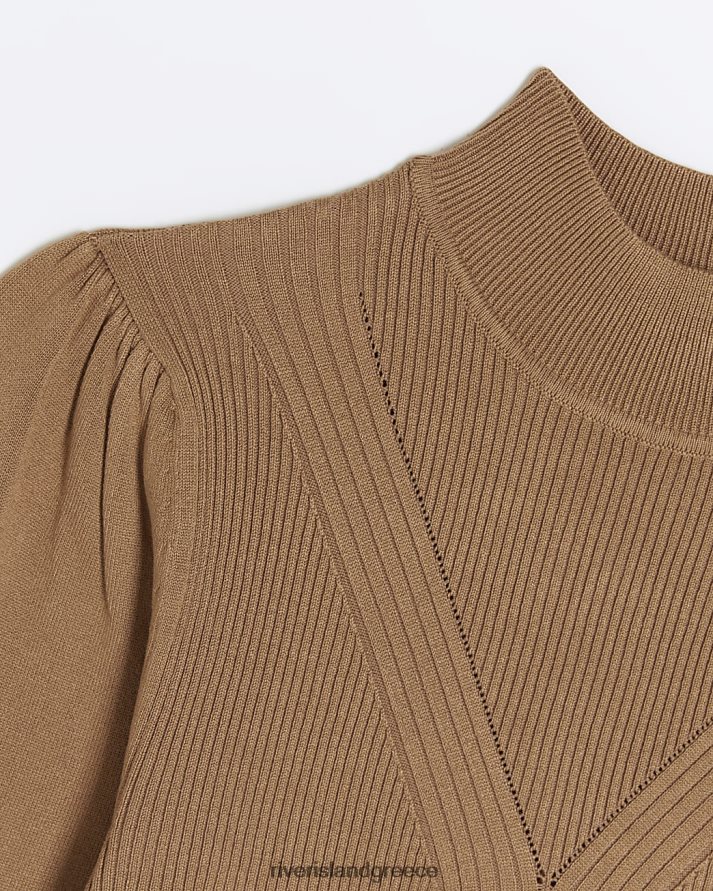 River Island ενδύματα καφέ γυναίκες rib mix roll λαιμόκοψη B6N8X174