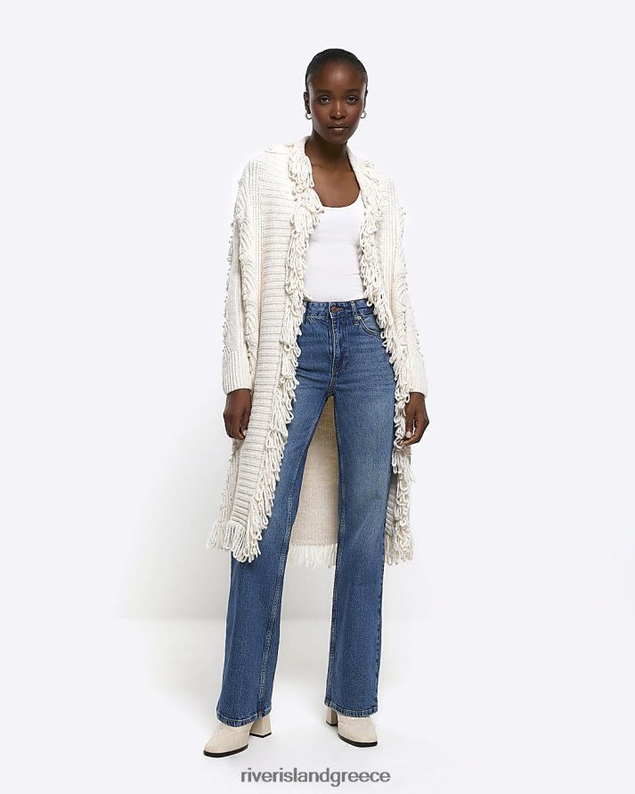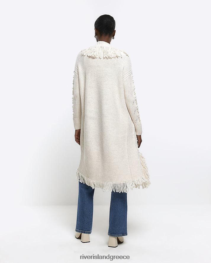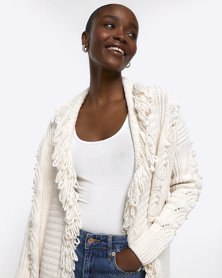 River Island ενδύματα κρέμα γυναίκες Ζακέτα με κρόσσια με μαργαριτάρι B6N8X4423