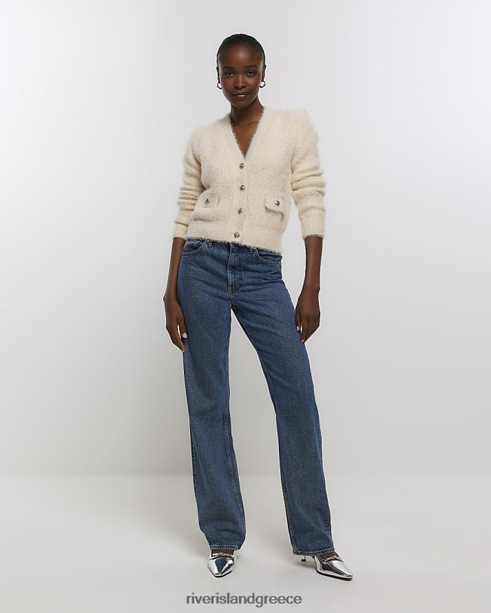 River Island ενδύματα κρέμα γυναίκες πλεκτή ζακέτα ώμου B6N8X265