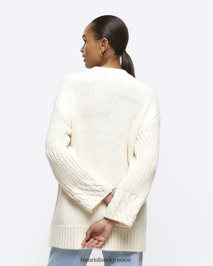 River Island ενδύματα κρέμα γυναίκες πλεκτό μπλουζάκι με καλώδιο B6N8X3833