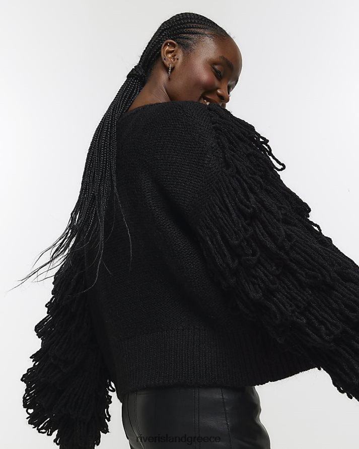 River Island ενδύματα μαύρος γυναίκες ζακέτα με λεπτομέρεια κρόσσια B6N8X505