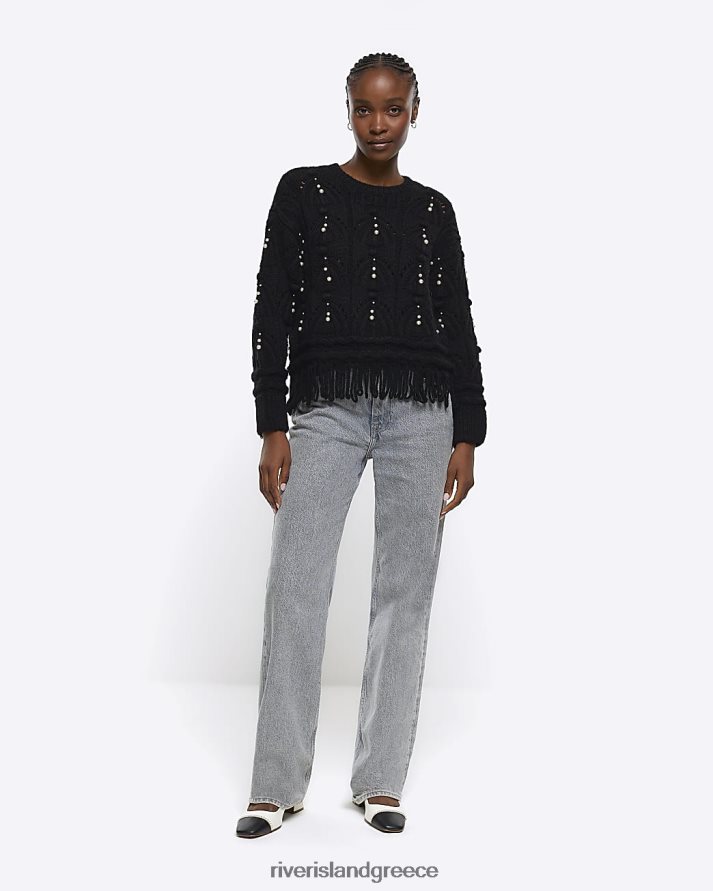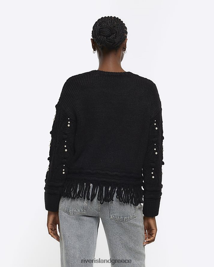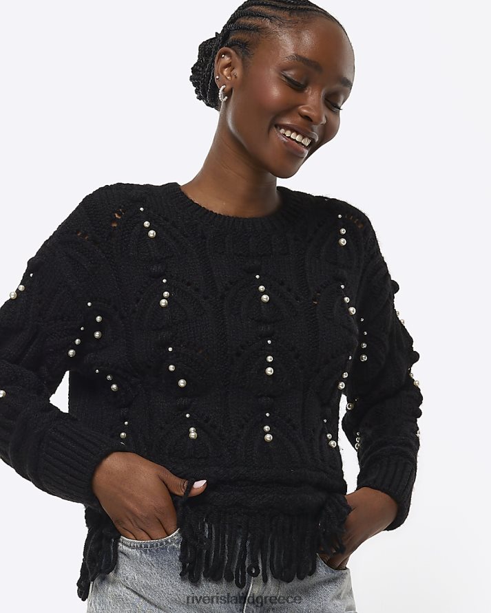 River Island ενδύματα μαύρος γυναίκες Πλεκτό μπλουζάκι με μαργαριτάρι B6N8X131