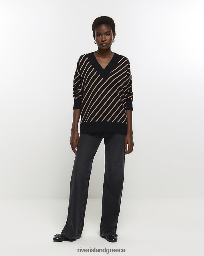 River Island ενδύματα μαύρος γυναίκες ριγέ άλμα με λαιμόκοψη B6N8X79