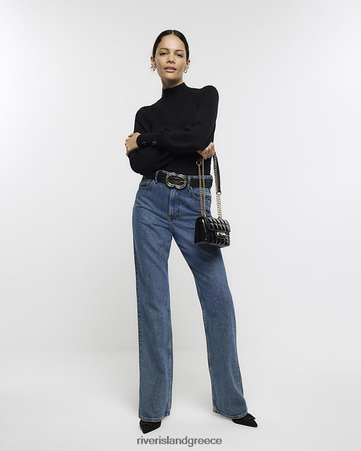 River Island ενδύματα μαύρος γυναίκες rib mix roll λαιμόκοψη B6N8X175