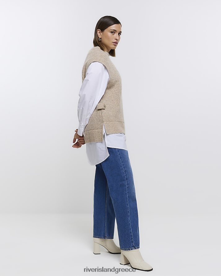 River Island ενδύματα μπεζ γυναίκες συν πλεκτό υβριδικό jumper B6N8X5079