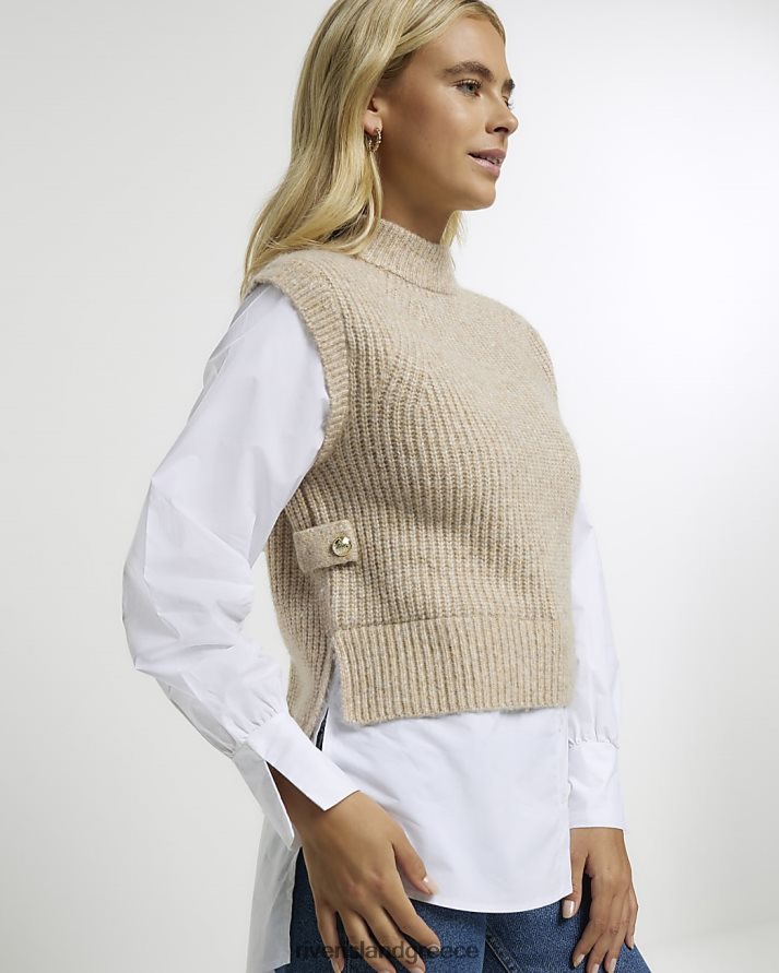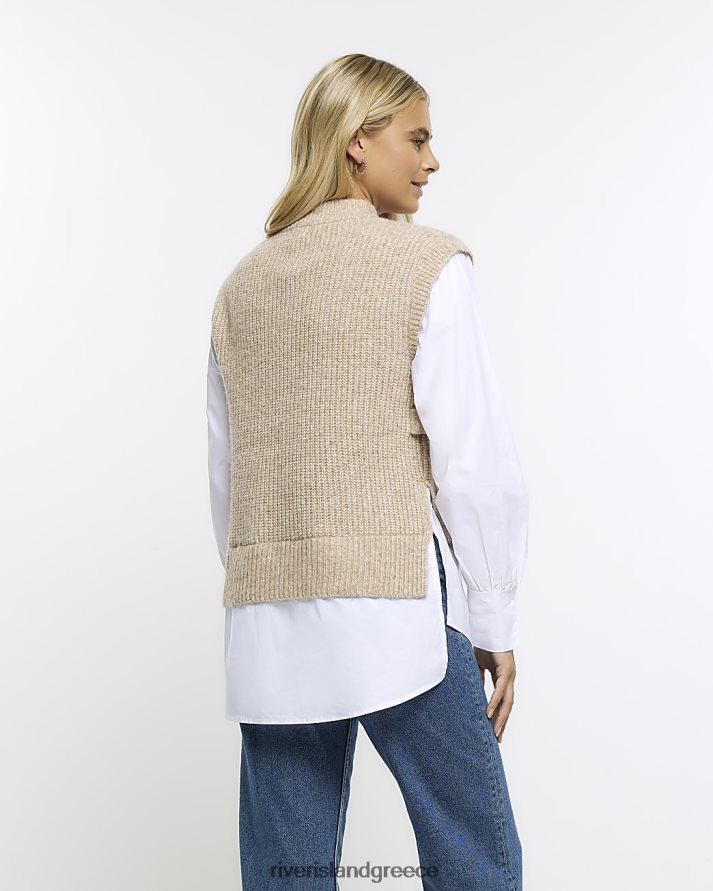 River Island ενδύματα μπεζ γυναίκες υβριδικό πουκάμισο μανίκι B6N8X661