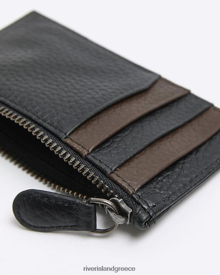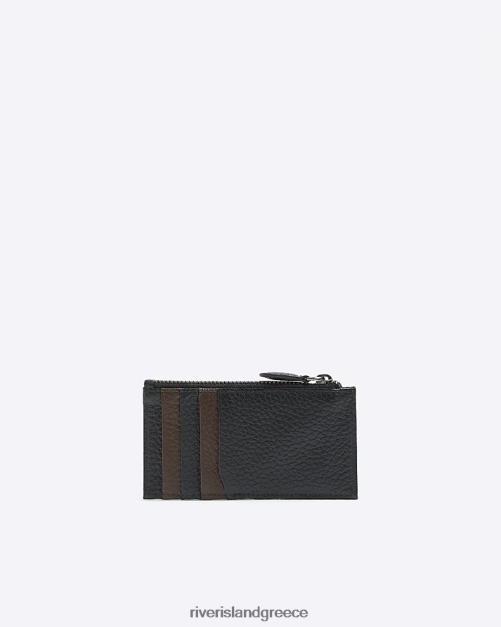 River Island αξεσουάρ μαύρος άνδρες δερμάτινη θήκη για κάρτα με φερμουάρ B6N8X5515