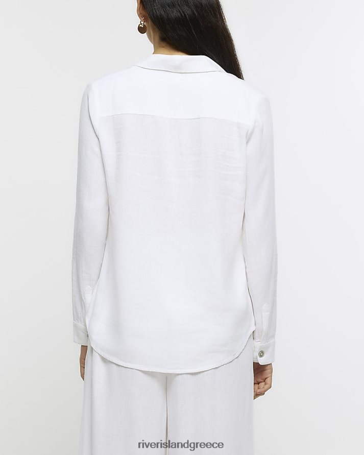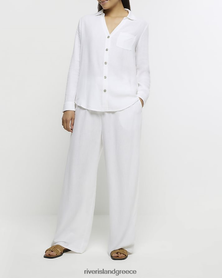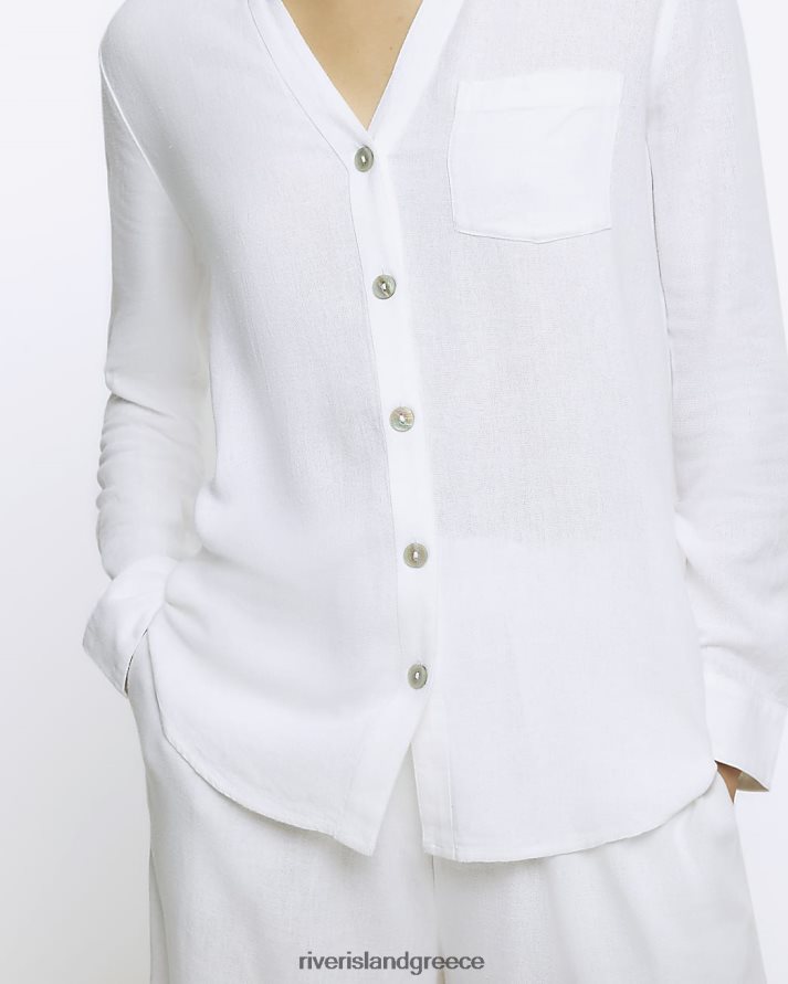 River Island ενδύματα άσπρο γυναίκες κουμπωμένο πουκάμισο με λινό B6N8X1245