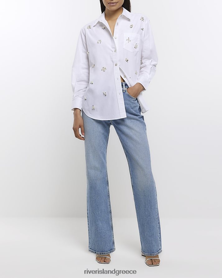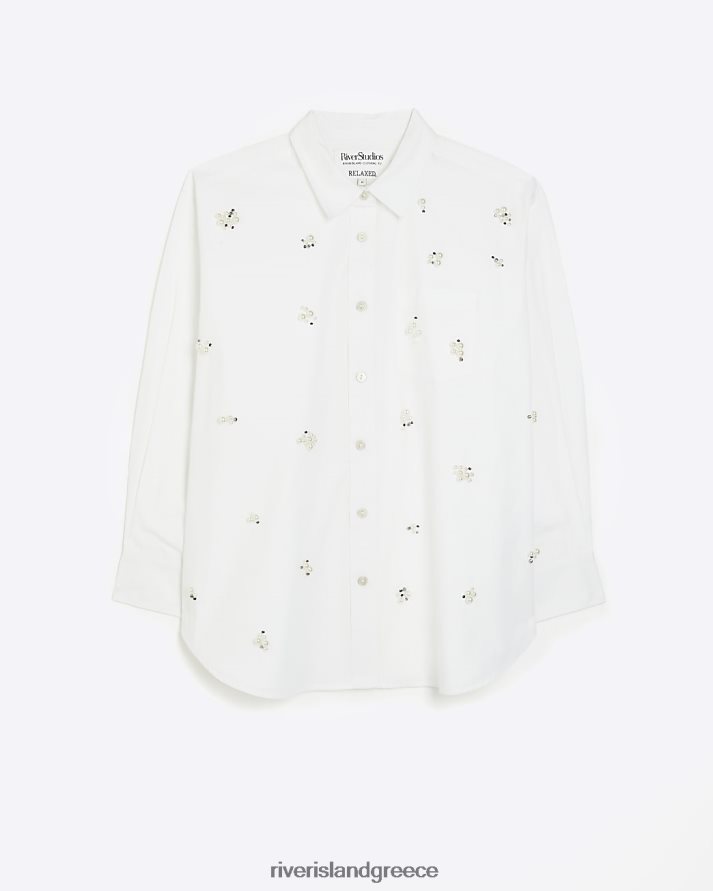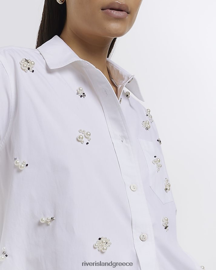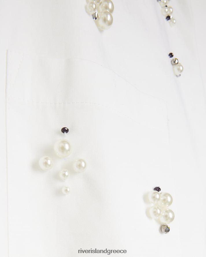 River Island ενδύματα άσπρο γυναίκες μαργαριτάρι διακοσμητικό πουκάμισο B6N8X3764
