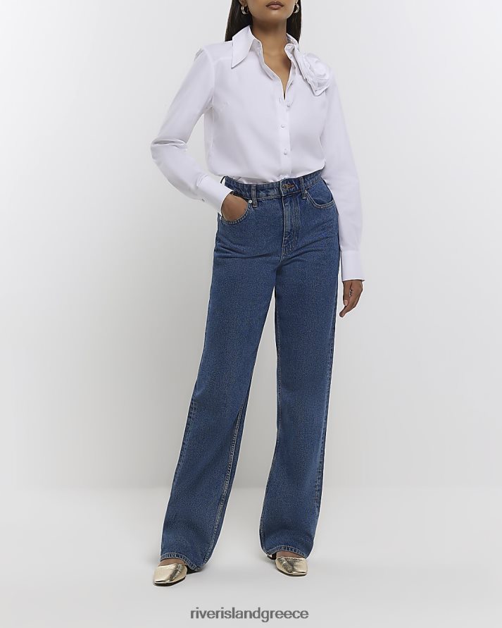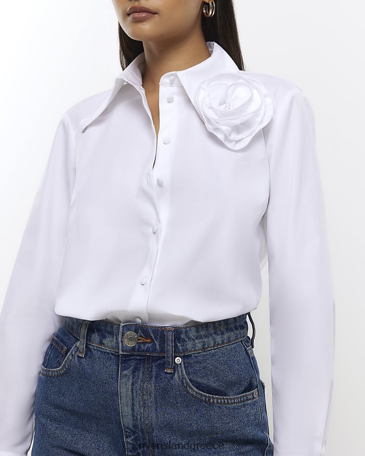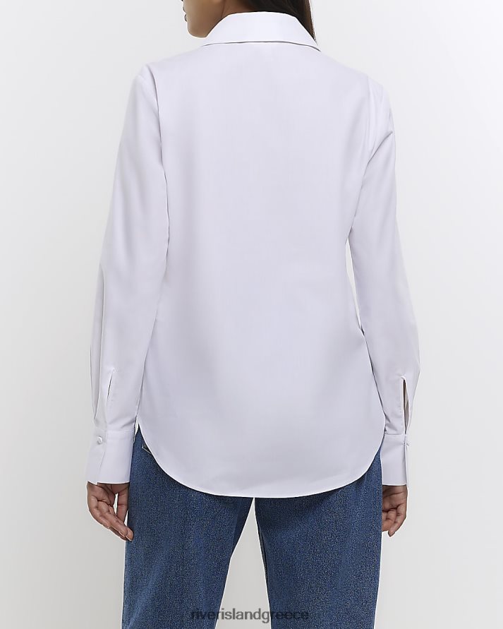 River Island ενδύματα άσπρο γυναίκες Ποπλίνα κορσάζ μακρυμάνικο πουκάμισο B6N8X4614