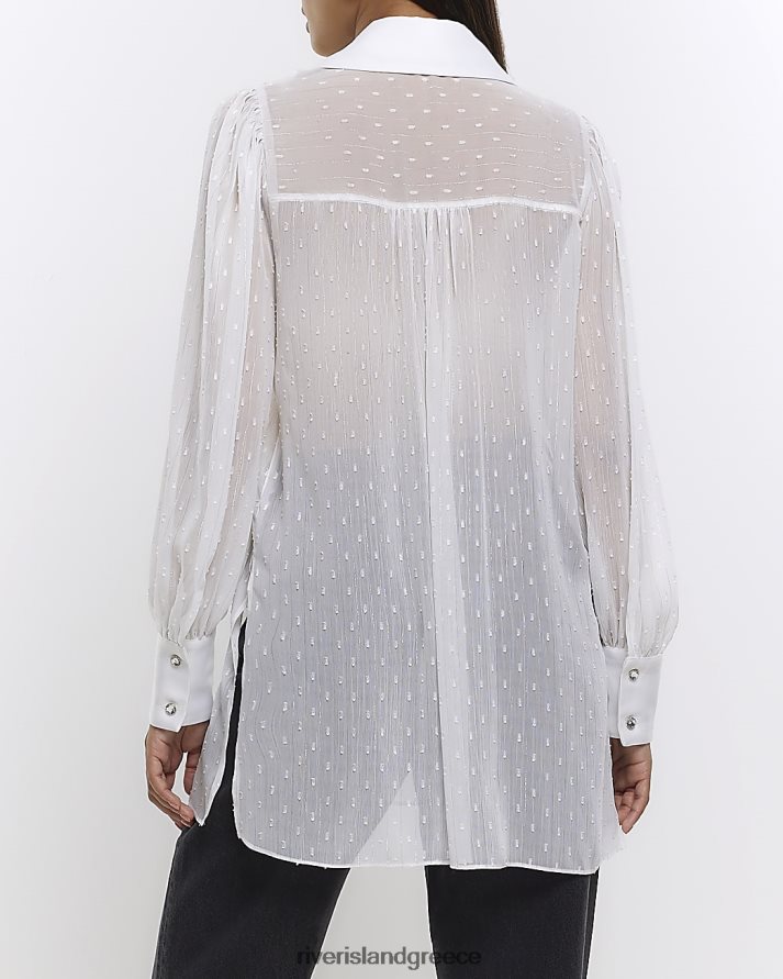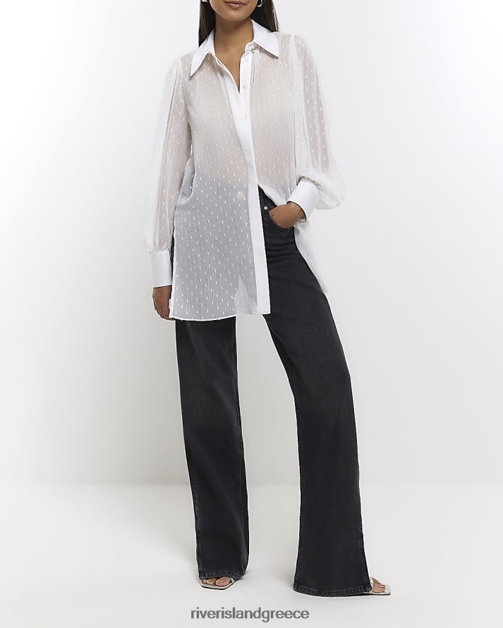 River Island ενδύματα άσπρο γυναίκες πουκάμισο με παραγάδι σιφόν B6N8X1445