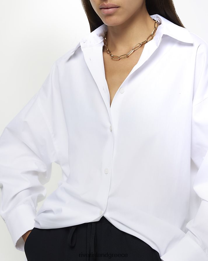 River Island ενδύματα άσπρο γυναίκες υπερμεγέθη πουκάμισο με σπαστό στρίφωμα B6N8X4178